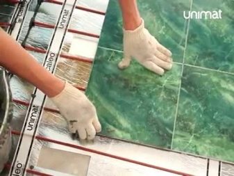 Според прегледите, оптималното по отношение на цена и ефективност, когато става въпрос за топло поле под плочките в банята или гипсокартон, е отоплителна постелка. Лесно се монтира – ролката се търкаля из стаята и се свързва към гнездо с термостат. Подложката не се страхува от удара на лепилото за плочки, така че не се изисква допълнителна изолация.