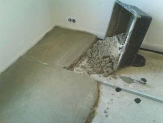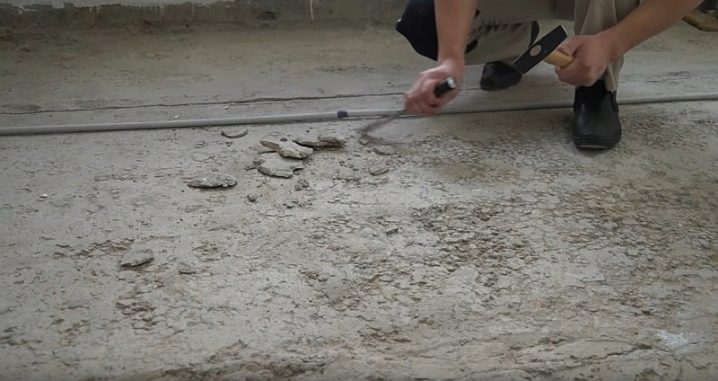 Преди извършване на работа, повърхността трябва да се подготви, като се отстранят всички натрупани строителни отпадъци. Необходимо е да се почисти циментовия прах и да се запечатат пролуките на плочите. Ако предишната замазка се смени и актуализира, тогава първо трябва да се отървете от нея напълно. По -добре е да премахнете стария слой на замазката, дори ако изглежда, че е добре запазен.