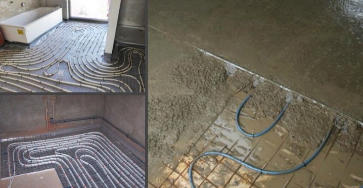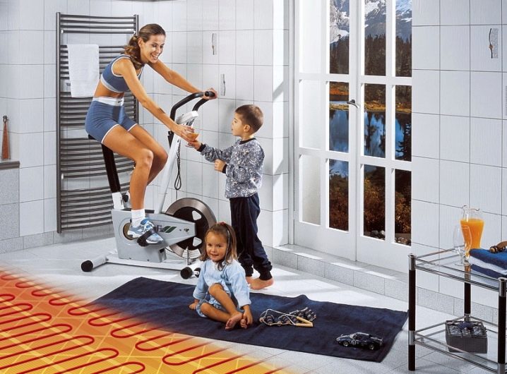 Системата за подово отопление на водна основа също има свои специфики в банята. Ако е инсталиран в апартамент, препоръчваме да получите съвет от проектантска организация, както и да формулирате и регистрирате официален проект и да получите съгласие от съседите. Препоръчително е да захранвате веригата с нагряваща среда от нагрета кърпа, а двупътните клапани на входа няма да намалят температурата на водата под и над щранга. Независимо дали трябва да отоплявате банята в апартамент или в частна къща, обърнете максимално внимание на хидроизолацията. Струва си да харчите пари за специален вид филм или еврорубероид.
