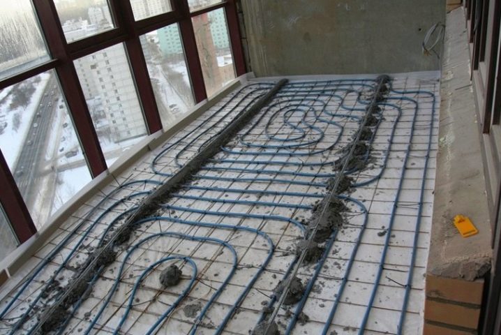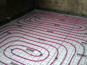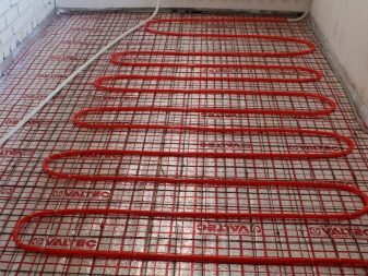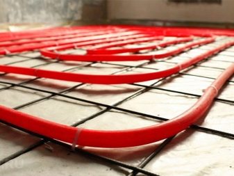 Когато замазката под ламината или линолеума е по -тънка от обикновено, допълнителна армираща мрежа се поставя директно под нея над веригата на отоплителната тръба.