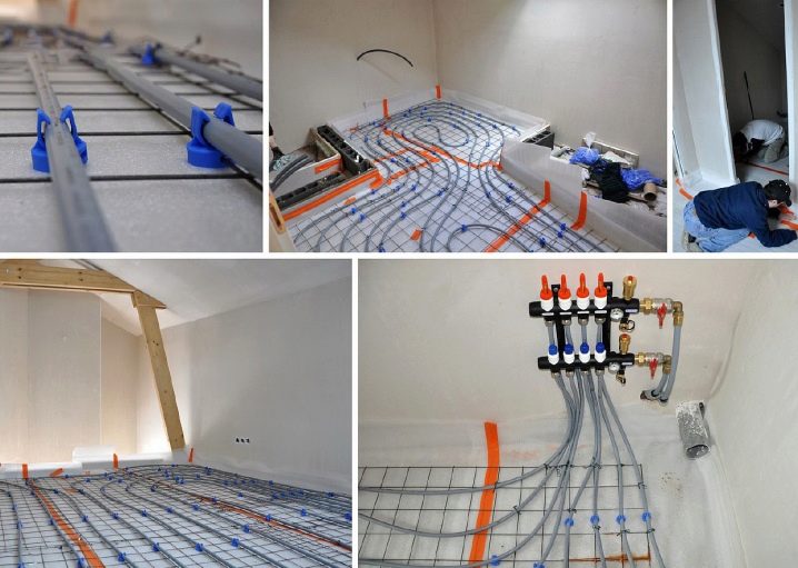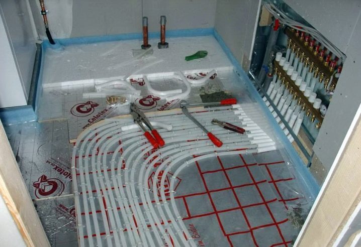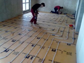 Съвременните производители предлагат специални изолационни материали за топли подове. Едната страна на такива нагреватели има канали за инсталиране на тръбопроводи. Препоръчва се използването на минерална вата, експандиран полистирол и специални рогозки. За укрепване на слоя замазка се използва армираща мрежеста конструкция, към която могат да се прикрепят тръби. Тяхното закрепване е снабдено с пластмасови връзки, така че няма нужда от закрепване на ленти и специални скоби. Когато основата е готова, няма смисъл да чакате нещо друго – време е да започнете да инсталирате самото оборудване за подово отопление.