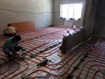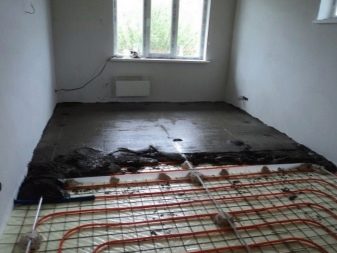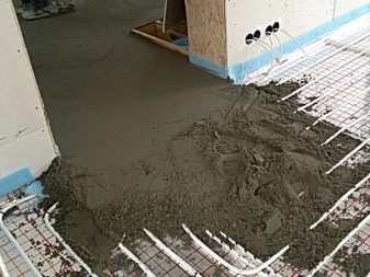 Дългото чакане (около месец или дори повече, ако метеорологичните условия са неблагоприятни) не подхожда на всички. Подова настилка може да се използва вместо бетонна замазка. След като поставите тръбите, ще трябва да оформите подложка за готовия под. Ако отгоре има ламинат, използвайте картон и полиетиленова пяна. Изливането под плочките също е по избор. За него, както и за линолеум, е подготвена специална конструкция на базата на плочи от дървесни частици, свързани със цимент.