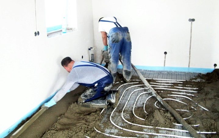 Разрешено е запълването на замазката само при подаване на течност при планираното налягане. Времето за сушене до готовност е най -малко 4 седмици (при идеални условия). Ако отгоре се полагат плочки, замазката трябва да има дебелина 30-50 мм, а тръбите се разпределят на разстояние 100-150 мм една от друга. Неспазването на тези правила, дори ако свързването на всички елементи е правилно, ще доведе до неравномерно нагряване на различни части от повърхността..