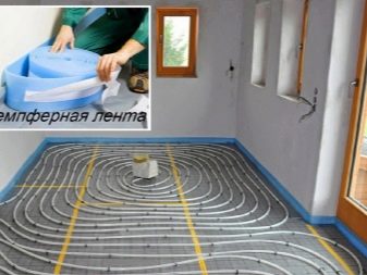 Периметърът на основата е зает с амортисьорна лента, която ще помогне да се компенсира термичното разширение на основното подово покритие по време на отопление. Важно е да се вземе предвид, че когато има няколко контура наведнъж, лентата трябва да се постави в интервалите на контурите близо една до друга..
