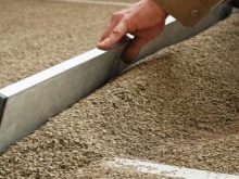 - Полусух хоросан се полага трудно поради ниската му течливост. За да го уплътните и подравните, ще трябва да работите усилено. Просто е невъзможно да направите това ръчно на големи площи.