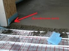 - полага се хидроизолация, амортисьорна лента се полага на височината на замазката по стените, преградите и други конструкции;