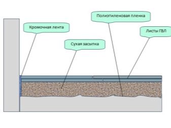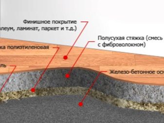 Невъзможно е да се сравни полусуха замазка със суха. Сухата версия изпълнява напълно различни функции. Полага се преди всичко за затопляне или повдигане на пода. Насипният материал, положен между фаровете или лаговете, е покрит с листове от гипсови влакна в два слоя. Шевовете са залепени, за да се предотврати навлизането на прах отвън, който присъства в свободно течащия пълнител. Довършителният под ще бъде толкова плосък, колкото позволява покривните листове.