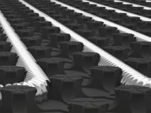 Дебелината на тези плочи е 35 мм. Вдлъбнатините се предлагат в различни конфигурации: кубични, цилиндрични, оформени и с височина 20-25 см. Плочите са оборудвани с брави, които сигурно закрепват платна заедно без пукнатини в единна мрежа. Тези рогозки също могат да бъдат ламинирани за по -добра пароизолация.. Спецификации: