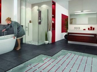 В банята подовото отопление се инсталира доста често. Благодарение на него влажността намалява и микроклиматът се подобрява и е просто приятно да ходите боси. Идеален вариант за такава инсталация би била постелка с босове, воден под. В случай на използване на готови едножилни постелки, можете незабавно да пристъпите към полагане на керамични плочки от порцелан, които ще служат като отличен проводник на топлина. Достъпността и лекотата на свързване правят тази технология за банята много популярна..