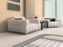 Подово отопление под килима – мобилен нагревател за отопление на подове в офис или жилищен район. Такава система се вписва под килима. Не изисква инсталация. Работи, когато се захранва от битова електрическа мрежа 220 V. Отличава се с икономична консумация на енергия. Загрява подовата повърхност до 30 ° C.