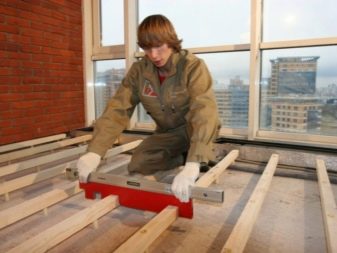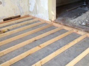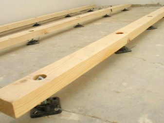 - Ако основата има наклони, тогава с помощта на специални основи за трупите този проблем може лесно да бъде решен без допълнителни разходи. В случай на бетонна замазка, това би довело до извършване на допълнителна работа и придобиване на материали, което би довело до значително увеличение на цената на конструкцията..