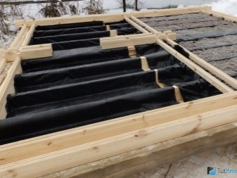 Върху изоставането се разстила слой от хидроизолационен материал. Лентите се припокриват, шевовете се залепват със специална лента. Освен това, хидроизолационният слой се подсилва с пръти или ламели, които се набиват върху трупите. За тези цели можете да използвате и скоби..