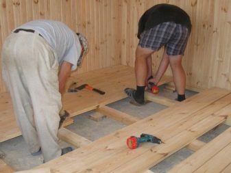След това преминете към монтажа на готовия под. Най-добрият вариант за подови настилки е дъска с език и жлеб. Този под може да се използва веднага като финишно покритие, ако е правилно обработен..