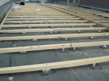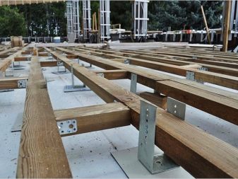 В случай, че дължината на дървения труп или гредата е по-малка от дължината на помещението, те се съединяват заедно върху носещите нощни шкафчета и се закрепват с самонарезни винтове. Лаговете и гредите са прикрепени към опорите със специални метални ъгли.