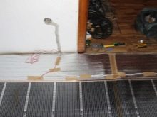 Към основния термостат обикновено се доставя специален сензор за температурен контролер. Първо трябва да го инсталирате. За да направите това, детайлът трябва да бъде монтиран в долната част на термофилма (директно върху черната нагревателна лента) и след това да бъде закрепен с битумна изолация. Необходимо е да се направи изрезка в изолона. Той е необходим, за да се избегне появата на различни неравности и неравности..