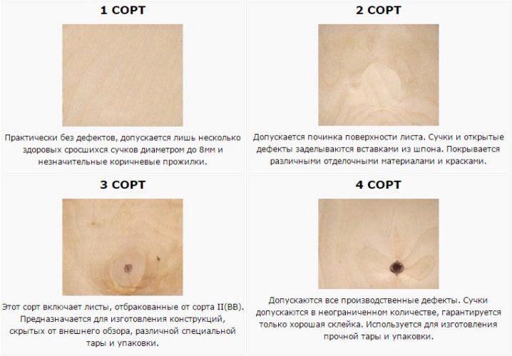 В съответствие с ГОСТ се произвеждат шперплатови листове от следните класове: