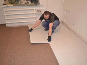 Листовете от гипсокартон могат да се използват и за изравняване на подовата настилка. Той се полага на подпола само след като е напълно почистен от предишното покритие и отломки / прах. Освен това, за да завършите основата с гипсокартон, тя трябва да бъде поръсена с пясък. Тя трябва да покрива напълно всички пукнатини и неравности, които са видими в основата..