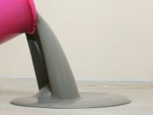 Саморазливният разтвор трябва да запълни абсолютно всички празнини и кухини, налични в бетонната основа, образувайки чиста и гладка повърхност. Такива смеси изсъхват доста бързо. Можете да ходите по тях след 3-4 часа, а след ден е допустимо да започнете да полагате декоративни покрития, например плочки.