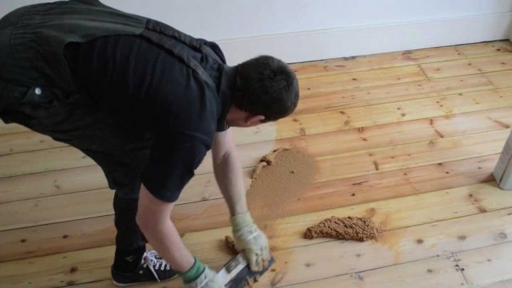 - Ако на основата се виждат забележими шевове и големи празнини (например между дъските), те трябва да бъдат покрити с шпакловка или същата изравняваща смес. За такава работа си струва да замесите по -дебели и по -вискозни състави..