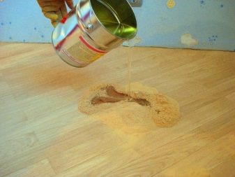- изравняване с помощта на смес, направена от него, състояща се от пълнител за дървени стърготини и естествено дърво;