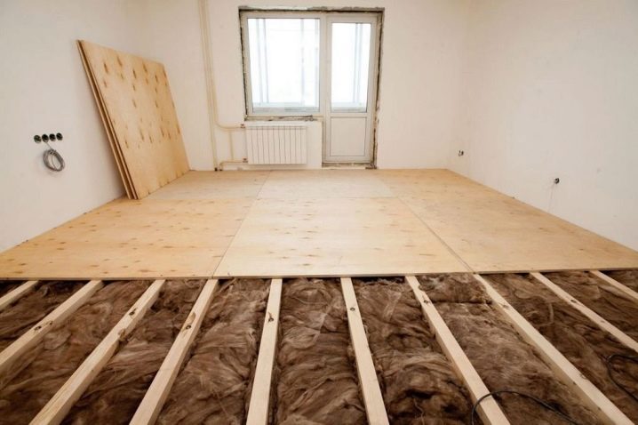 След тези стъпки е напълно възможно да се пристъпи към полагане на нивелирите върху основата. Фугите между положените покрития трябва да са над гредите. В райони, където са разположени комуникации и на други необходими места, шперплатът трябва да се реже (също толкова внимателно, за да се предотврати разслояване). След това листовете са прикрепени към основата върху самонарезни винтове със скрити глави. Този метод за изравняване не е най -естетичният, но за довършителния слой е отлично решение, което перфектно ще скрие всички неравности на дървената основа..