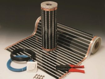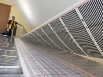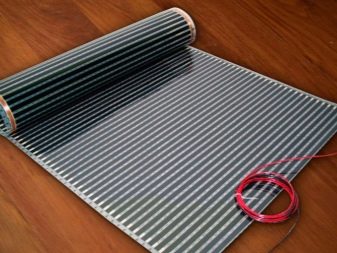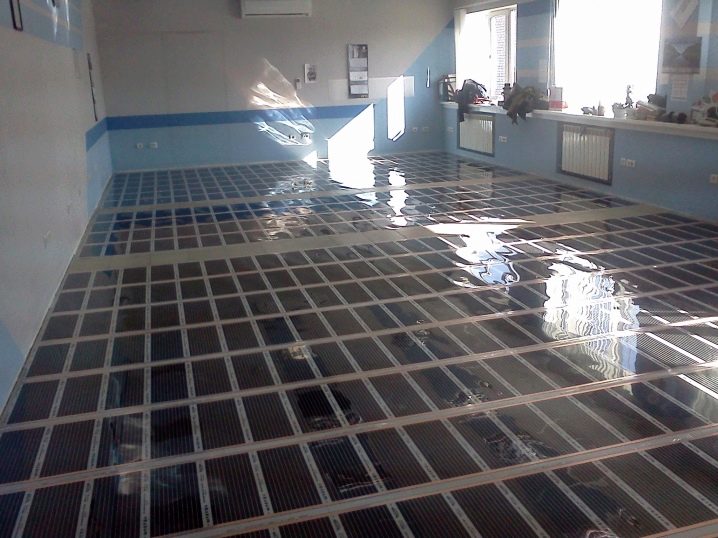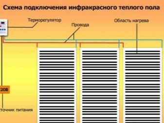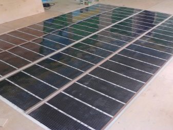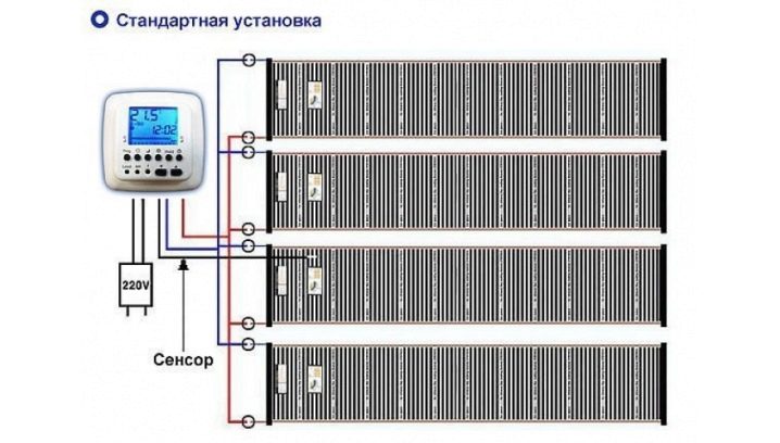 Възможно е да се намали консумацията на проводници, ако контактите са насочени към регулатора. Към медната лента е прикрепена скоба, нейната страна е разположена вътре в покритието, втората е разположена върху медната лента. Линиите на изрязване са изолирани с битум. Филмът се фиксира с помощта на електрическа лента. За да направите това, трябва да изравните основата, да поставите топлоотразяващ материал на пода..