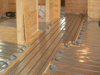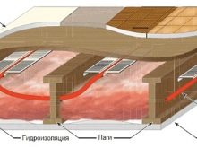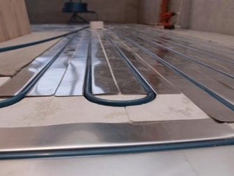 По правило плочите “отнемат” 30 мм височина и ако се поставят директно върху гредите, тогава загубата му ще бъде нула. Плочковият топлообменник се поставя между “грубата” основа и изравняващите листове, тръбите се вкарват в специални канали, след което се монтира довършителният под.