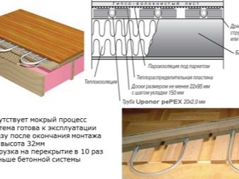 Отоплителната система на плоча е подходяща за отопление на домове с подове от греди. Поради уникалната структура на профилите, такава инсталация е алтернативно решение за подреждането на стари сгради, в които преди това е било невъзможно да се монтират “топли” подове. Освен това новото покритие по никакъв начин няма да повлияе на височината на помещенията, което не може да се каже за бетонната замазка..