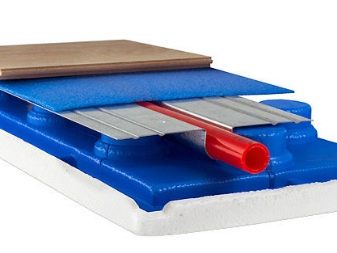 Термопластът се счита за основен елемент на системата, който се използва за полагане на “топли” подове. Те са метални профили и са подходящи само за сухи подравнени основи. Разграничавайте алуминиевите и стоманените топлоотвеждащи плочи, външно те имат прост външен вид, предлагат се в различни размери и конфигурации. В зависимост от вида на производството този елемент може да има различна структура, но основните му показатели са: