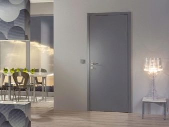 - Сив. Може да се класифицира и като универсален. Ако в този цвят има син нюанс, вратите ще изглеждат леко студени, което прави интериора строг. От друга страна, сиво-бежовите крила на вратите ще изпълнят всичко около тях с топлина. Трябва да се има предвид, че сивият цвят визуално намалява пространството, така че е по -добре да не се монтират такива врати в малки помещения..