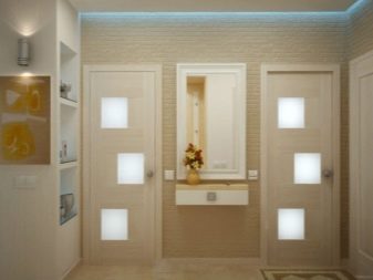 - Лъскавото светло крило на вратата също има своите предимства. Изглежда, че в стаята има повече слънце. Ефектът от присъствието му е особено важен в мрачното пространство на коридора..