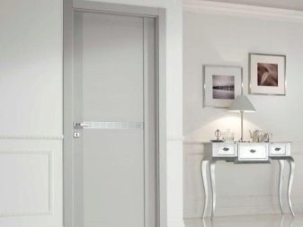 - Сив. Може да се класифицира и като универсален. Ако в този цвят има син нюанс, вратите ще изглеждат леко студени, което прави интериора строг. От друга страна, сиво-бежовите крила на вратите ще изпълнят всичко около тях с топлина. Трябва да се има предвид, че сивият цвят визуално намалява пространството, така че е по -добре да не се монтират такива врати в малки помещения..