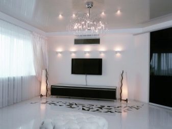 Можете също така да поставите необходимите акценти с помощта на компетентно осветление. Белият под може да придобие нюанси на цветовете, с които лампите блестят. Трябва да използвате тази техника внимателно..