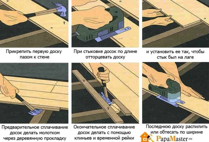 - По време на монтажа нивото на пода трябва да се следи внимателно – то трябва да е идеално равно. Неспазването на това условие може да доведе до факта, че в бъдеще дъските ще започнат да скърцат или да се чупят..