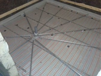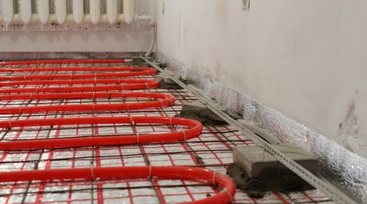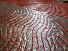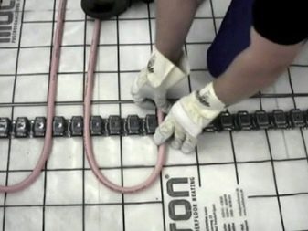 Нагревателните елементи – тръбите, през които ще циркулира топла вода – са фиксирани към мрежата със скоби. По -добре е да ги поставите със змия или охлюв – тук е важно да се спазва принципът на един контур.