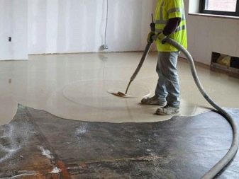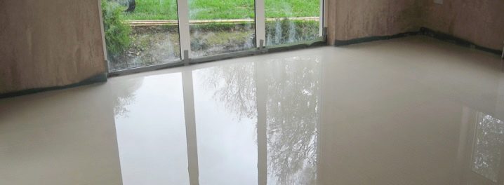 Видът на сместа се избира в зависимост от дебелината на излятия слой. Той се основава на гипс, който позволява на пода да изсъхне бързо и му придава пластичност. Този строителен материал се използва за изолация и звукоизолация..