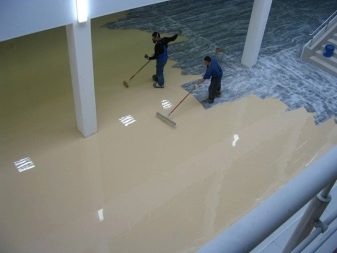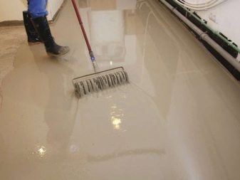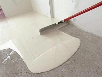 Преди изливането е необходимо да се монтират маяци, които контролират дебелината на покритието. В ъглите на стаята, на мястото на свързване на подовите плочи със стените, трябва да се постави изолационна лента, за да се предотврати изтичане.