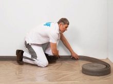 Размерът на амортисьорната лента трябва да съответства на периметъра на помещението и не е необходимо да пропускате ширината на вратите.