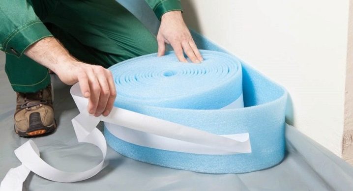 - Ръчна лента. Използва се за допълнителна звукоизолация. Поглъща звуците на човешки стъпки и други възможни шумове. Поставете го върху цялата площ на помещението между замазката и всички стени.