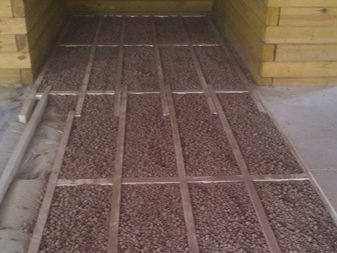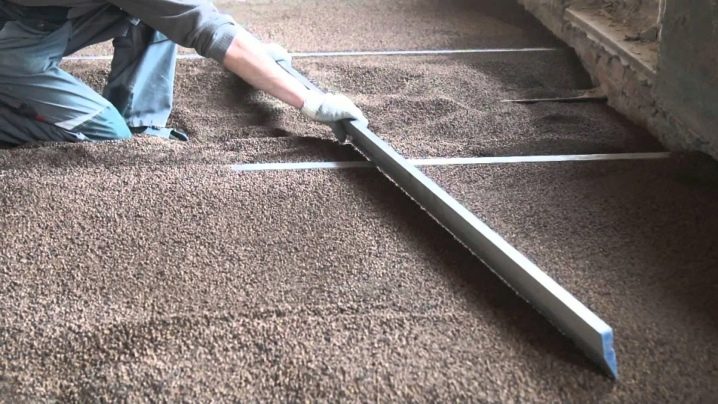 - Запълване на кухини с експандирана глина. За да намалите броя на движенията по повърхността на новата замазка, започнете да пълните фракцията от експандирана глина от страната, противоположна на вратата. Такава работа трябва да се извършва както с дървен под, така и с други видове подови настилки..