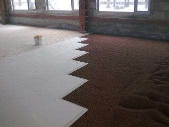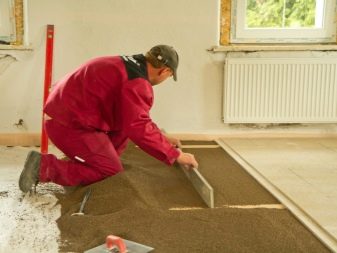 - Сухо запълване. Най -често се използва експандиран глинен пясък с размер на фракцията не повече от 5 мм. За засипване се използват и материали като перлит, кварцов пясък, финозърнеста шлака и др. Сухата смес изравнява основата на пода, изглажда всички неравности, ями и наклони. Минималната дебелина на сухия запълващ слой трябва да бъде най -малко два сантиметра.