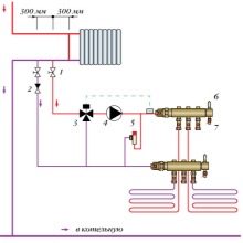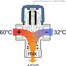 Също така системата често изисква включване на трипътен вентил за регулиране на водните потоци. Присъствието му в системата прави възможно подаването на вода със стабилна температура към разпределението на топлия под. На вентила има термостатична кутия, която ви позволява да регулирате отоплението на изхода. Смесването на вода става между горещата вода, идваща от котела, с течността, която се връща от системата, което дава максимална икономия.