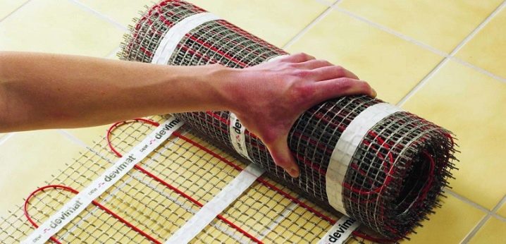 Това е найлонова мрежа с ширина 50 см с тънък нагревателен кабел, вече фиксиран върху нея с малка стъпка (5-7 мм). Този метод за полагане на топъл под е създаден специално за помещения, където не е възможно да се запълни дебел слой бетонна замазка..