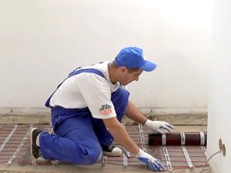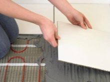 Също така е силно препоръчително да инсталирате отоплителни постелки на място, което няма да съдържа мебели. Те се полагат на ленти, започвайки по стената, а след това внимателно се прави разрез в самата постелка и, разгъвайки я, се полага успоредно на инсталираната лента. След като инсталирате всички елементи на системата, проверете захранването. И след това рогозките се изсипват с лепило за плочки. Препоръчително е да изчакате около седмица, докато лепилото изсъхне напълно..