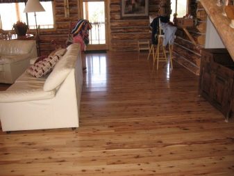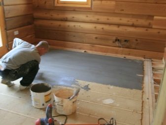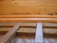 - Ако има плаваща плоча (това често се прави при изграждане на дървени къщи върху влажни почви), тогава подът може да бъде подреден по трупи или върху замазка.
