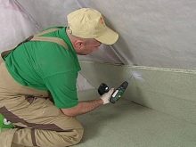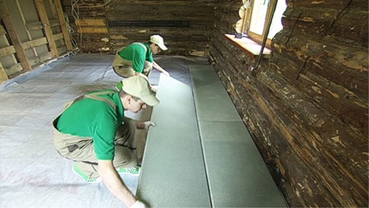 Отгоре изсушеният гипс е покрит с изолация и покрит с експандирана глина. След това плочите, навлажнени с антисептик, се поставят една след друга на разстояние около 2 см от стената. Инсталацията, както и изливането, започва от противоположния ръб на стаята..