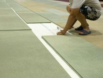Вторият, третият и така до края се съединяват с първия лист. Препоръчва се плочите да се подреждат така, че фугите между тях да преминават над гредите. Ако планирате да покриете пода в тесен коридор, тогава усилващите елементи трябва да бъдат разположени от другата страна на коловоза.
