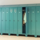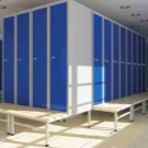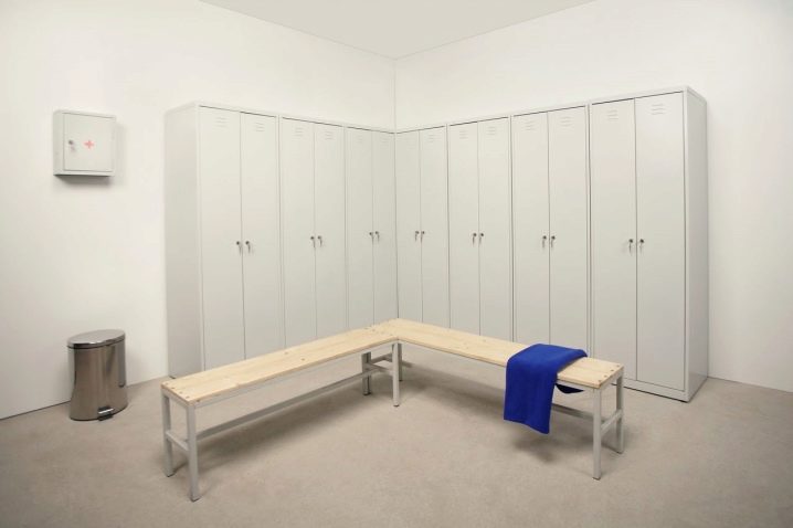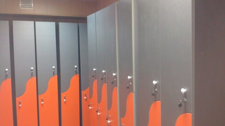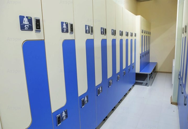 В басейни, в спортни клубове и клубове, където е необходимо да се постави голямо количество мебели за посетители в малко пространство, много често се монтират шкафчета с хоризонтално разделяне на отделения. Освен това всяко от отделенията може да се заключва с ключ и да се използва като отделен елемент от съблекалнята..