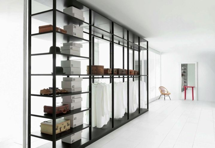 Такава структура винаги може да бъде модифицирана, преоборудвана, пренаредена и заменена, ако е необходимо. Опцията за вградена съблекалня е идеална за жилища под наем – лесно се разглобява и взема със себе си. Метална система за съхранение на дрехи е незаменима в помещение, където няма отвори за прозорци и врати. Това е чудесно решение за помещения с нестандартно оформление..