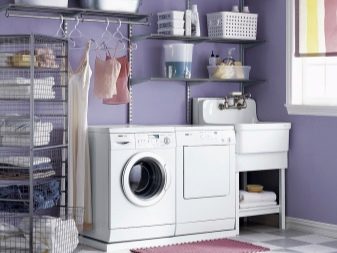 Зоната на стената се използва много по -ефективно при наличие на отделни рафтове, кошници, панталони и пр. В такава съблекалня има достатъчно място за поставяне на допълнителна дъска за гладене, евентуално пералня. Най -накрая ще се отървете от боклуците и ненужните неща, които е жалко да изхвърлите, но и те не са подходящи за носене..